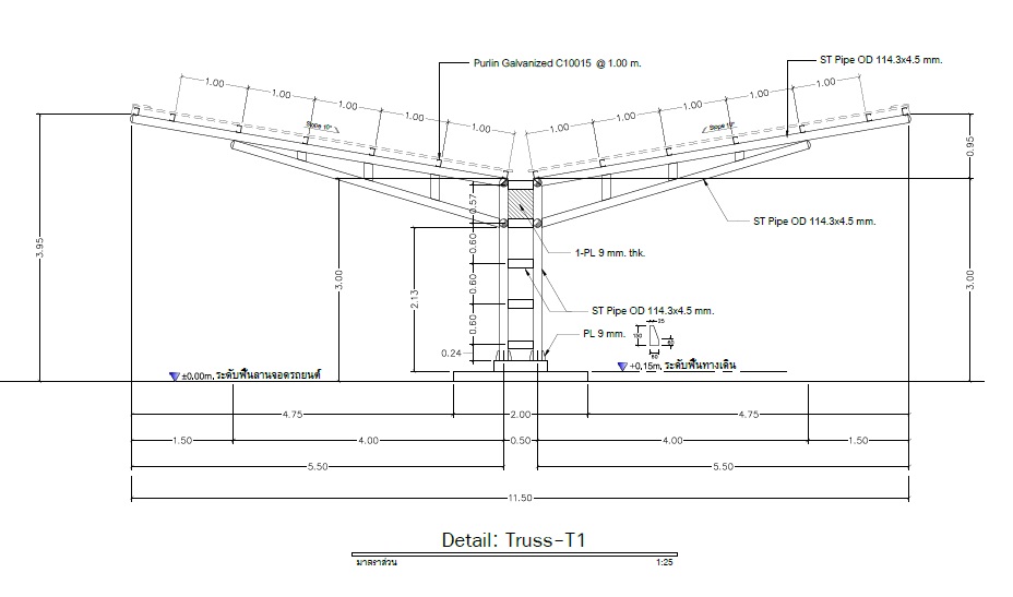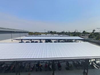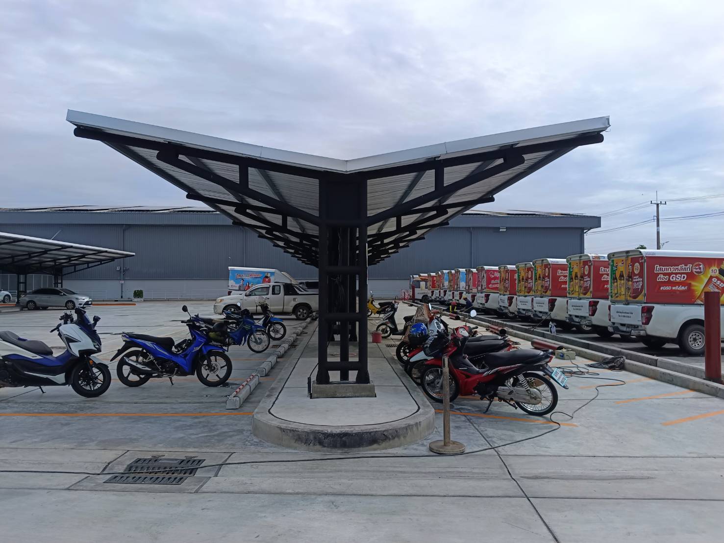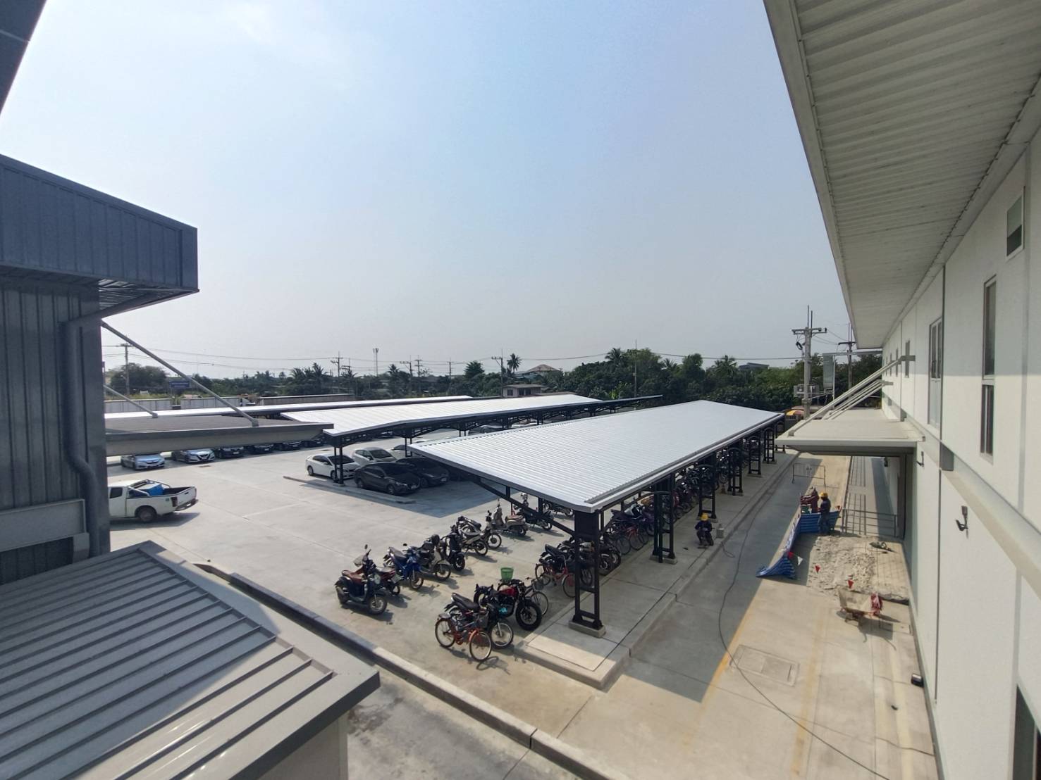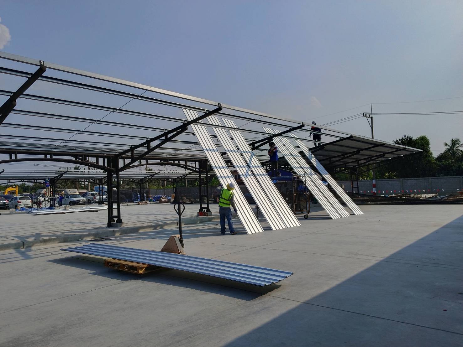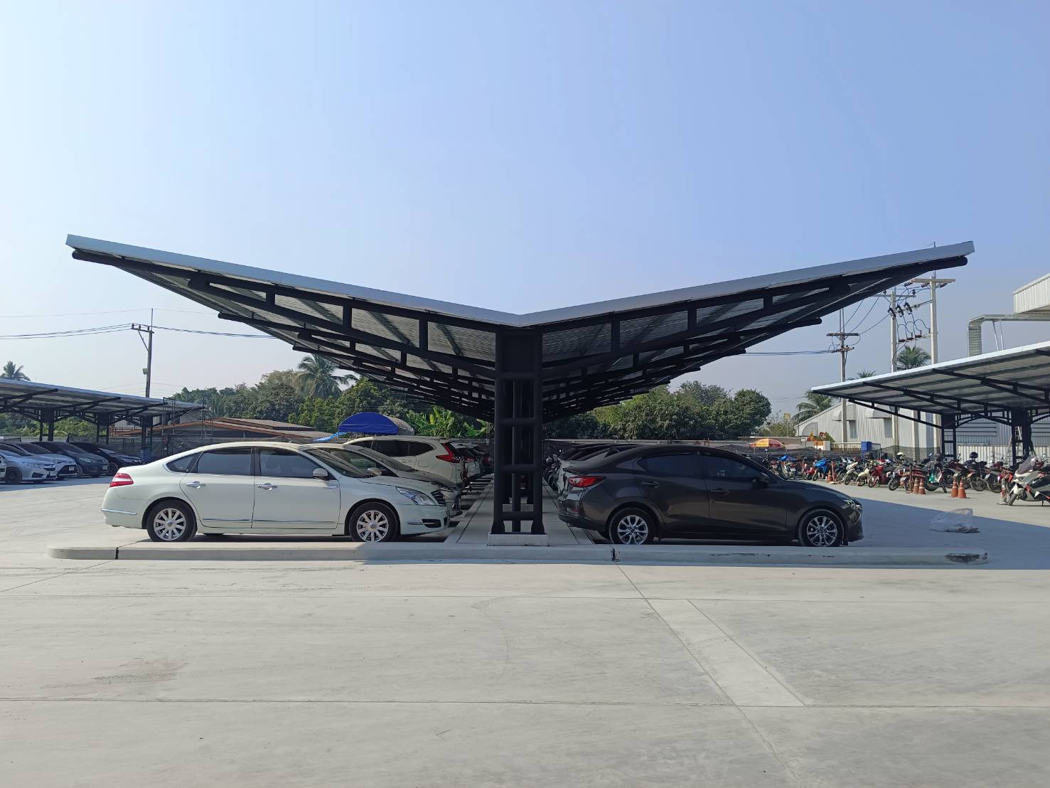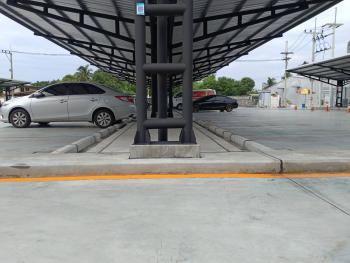 : หลังคาที่จอดรถ แบบฐานรากคอนกรีตเสริมเหล็ก 27 ฐาน โครงสร้างเหล็กรูปพรรณ และหลังคามุงแผ่นเมทัลชีท เริ่มก่อสร้างปี : 2567